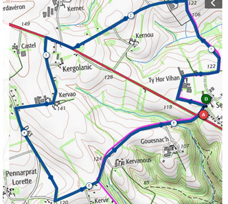 3 – Tourner à gauche et rejoindre la route départementale Plogonnec – Quimper.