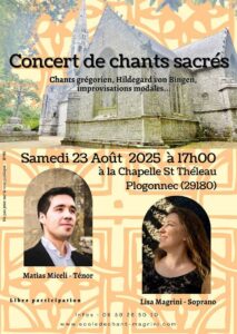 Matias Miceli est chanteur, professeur de chant et chef de chœur, né en Argentine. Il commence sa carrière dans le chant choral et la musique vocale d’ensemble, avant de se former en Europe à la Schola Cantorum de Bâle, où il approfondit l’interprétation des musiques anciennes. Son parcours est marqué par une grande diversité de répertoires. Il chante aussi bien du chant grégorien que de la polyphonie de la Renaissance, du chant lyrique, des chants traditionnels argentins et du tango. Il aime passer d’un style à l’autre avec exigence et sensibilité, en s’adaptant aux esthétiques et aux langages vocaux propres à chaque tradition. En duo avec Lisa, ils tissent un chant à deux voix à la fois ancien et contemporain, sacré et vivant.