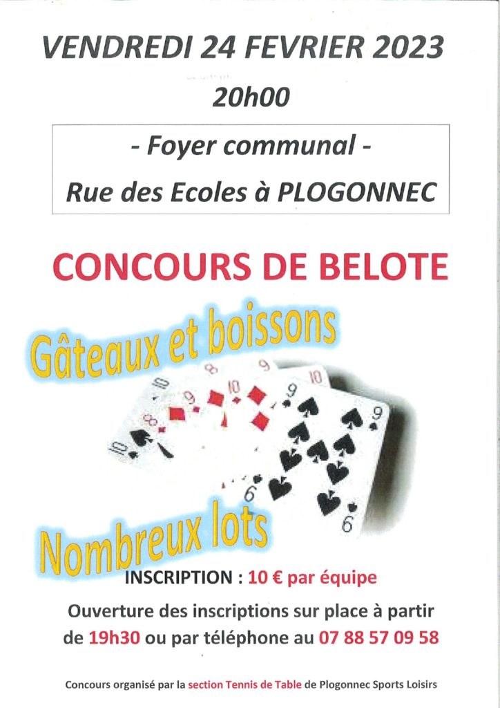 Concours de belote le vendredi 24 février à partir de 20h au foyer communal (rue des Ecoles)