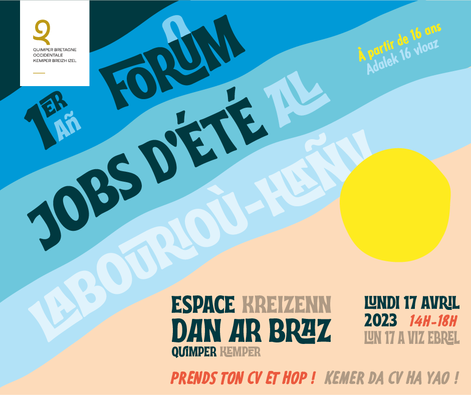 Quimper Bretagne Occidentale, organise son premier forum jobs d’été le 17 avril de 14h à 18h à la salle Dan Ar Braz.
