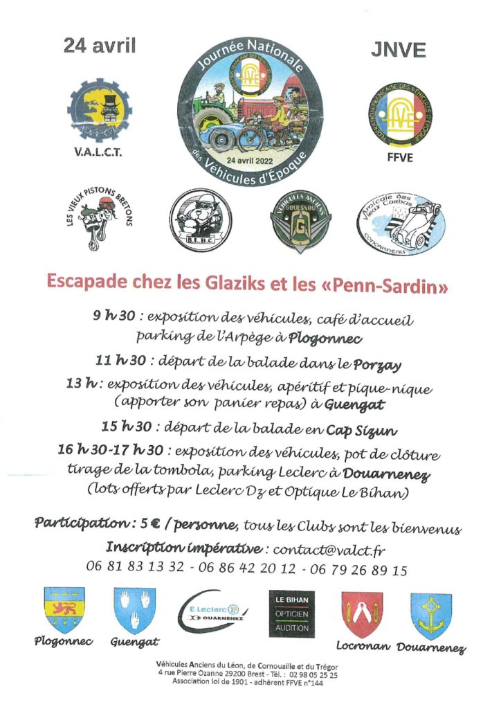 L’association des véhicules anciens du Léon organise une « Escapade chez les Glaziks et les « Penn-Sardin » le dimanche 24 avril 2022.
