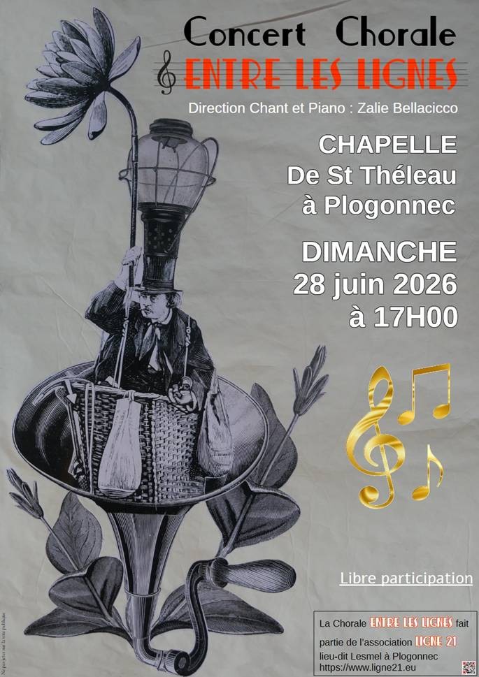 La chorale « Entre les Lignes » de LIGNE 21 chantera le dimanche 28 juin dans la chapelle de St Théleau à Plogonnec.