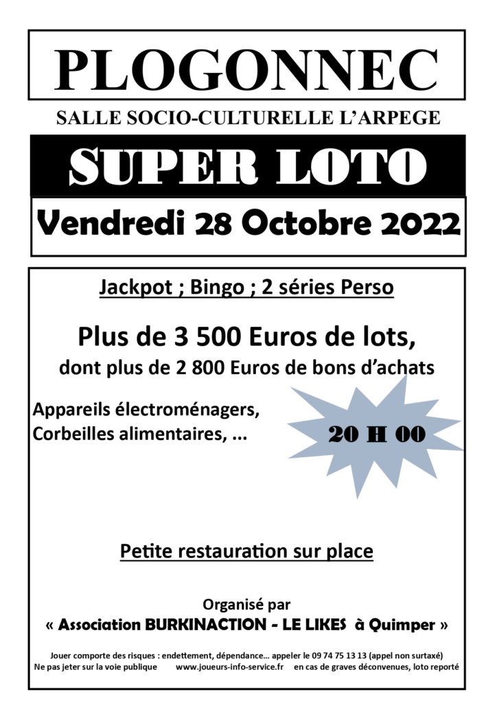 Loto le vendredi 28 octobre à 20h à la salle de l’Arpège.