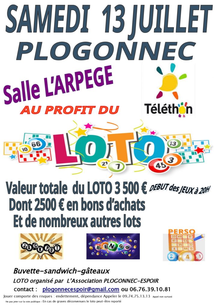 Loto le 13 juillet 2024 avec l’association Plogonnec Espoir