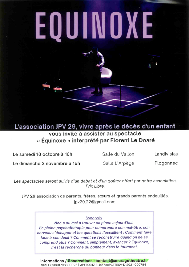 L’association JPV 29 vous invite à assister au spectacle « Equinoxe » interprété par Florent LE DOARÉ.
