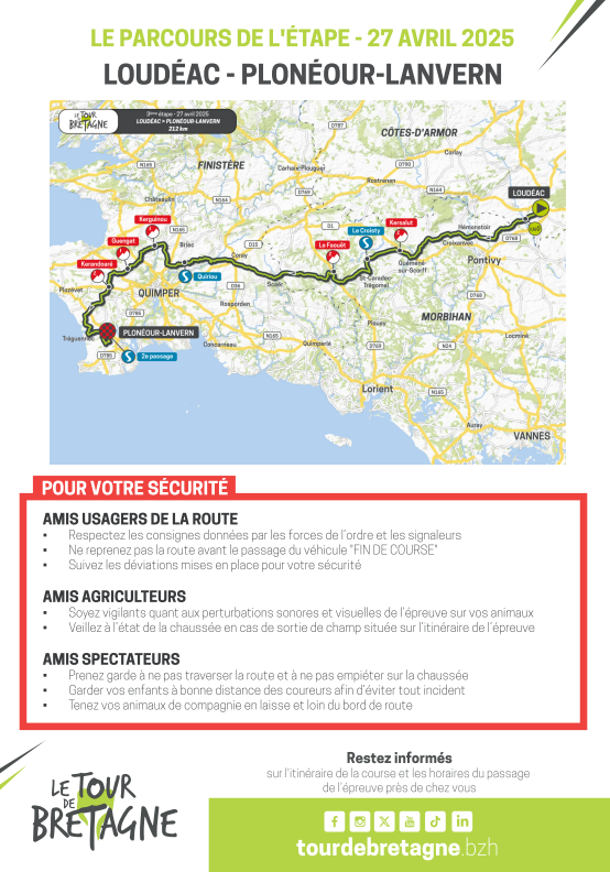 Le 27 avril l’étape 3 du Tour de Bretagne reliera Loudéac à Plonéour-Lanvern en passant par Plogonnec.