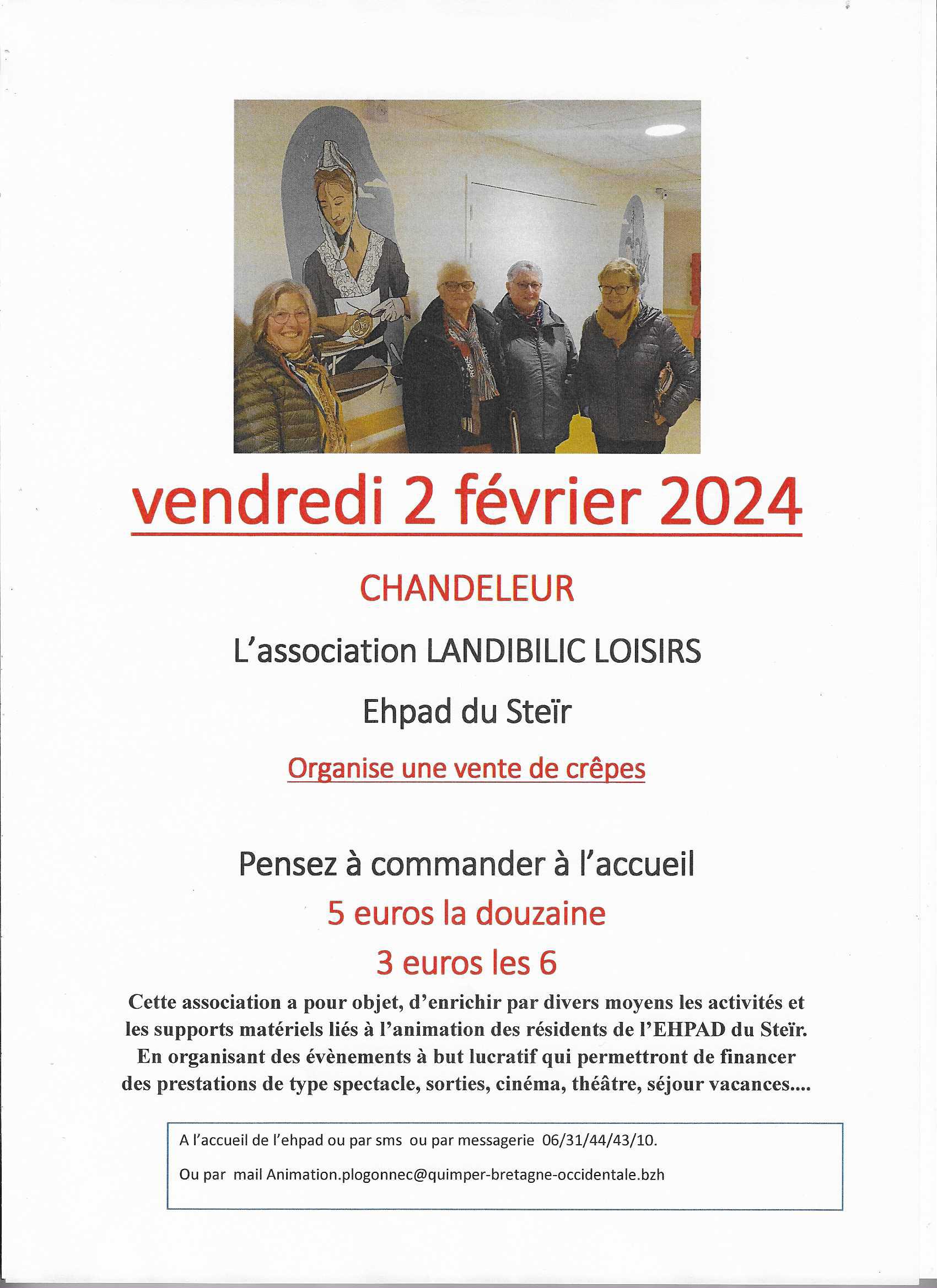 L’association Landibilic Loisirs organise une vente de crêpes à l’EHPAD du Steir.