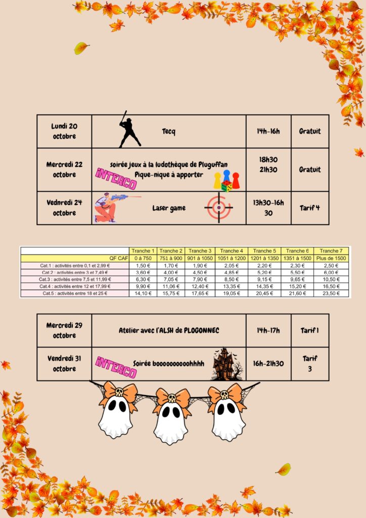 Programme de l’espace jeunes du 20 au 31 octobre 2025 :