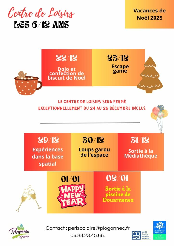 Programme du centre de loisirs des vacances de Noël