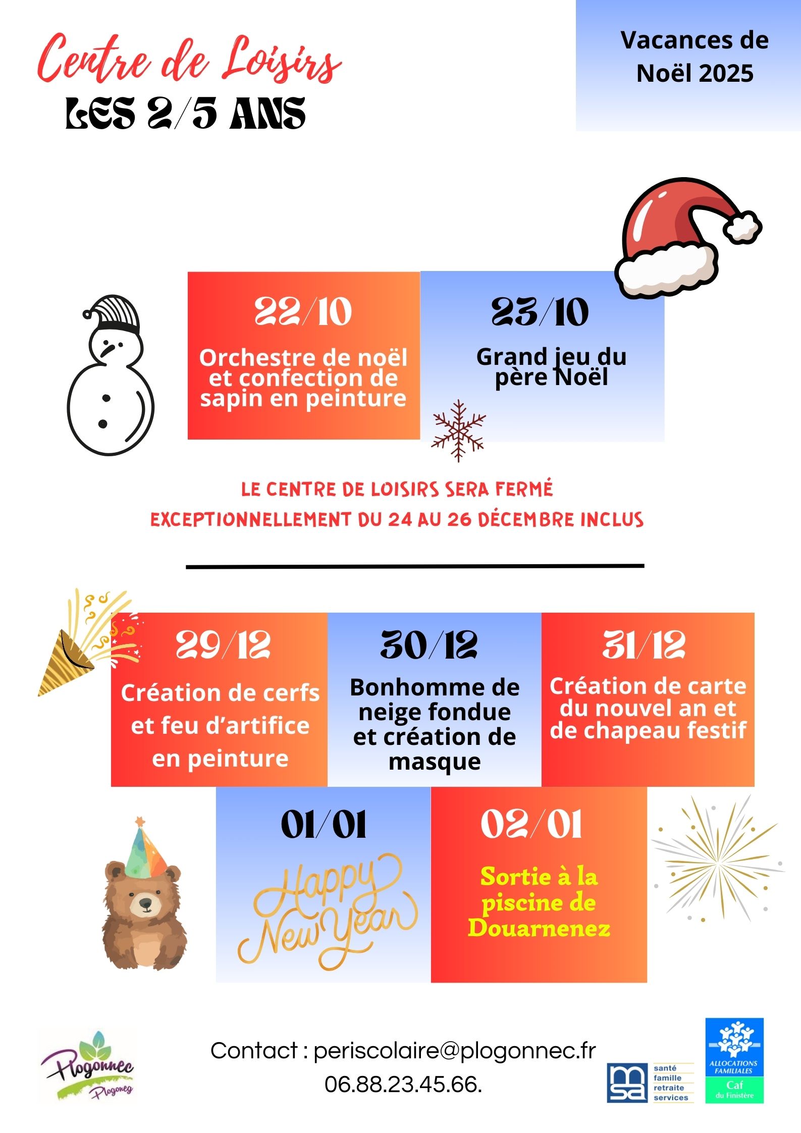 Programme du centre de loisirs des vacances de Noël