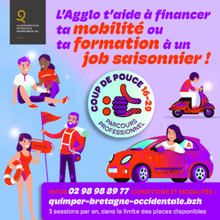 Dans le cadre de sa politique jeunesse 16-29 ans, Quimper Bretagne Occidentalesoutient les jeunes dans leur parcours professionnel : des aides à la mobilité et à laformation à un job saisonnier (BAFA, BNSS, secourisme)....